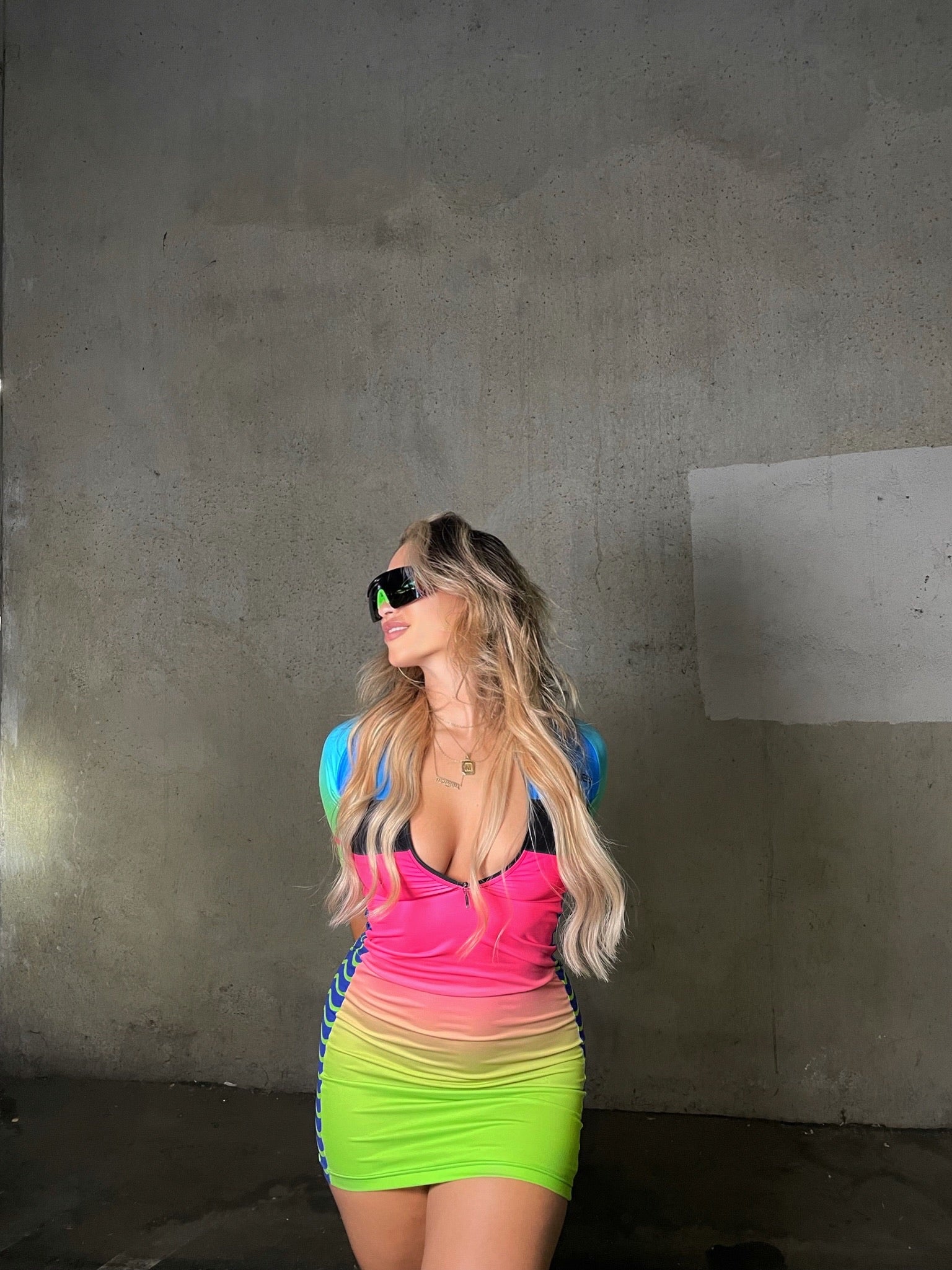 A statement piece that’s as captivating as its namesake. This bodycon dress features a stretchy, form-fitting material that hugs your curves, while the front zipper adds an edgy touch, making it the standout piece your wardrobe needs. Just like the mesmerizing lights of the aurora polaris, this dress is designed to turn heads and leave a lasting impression.