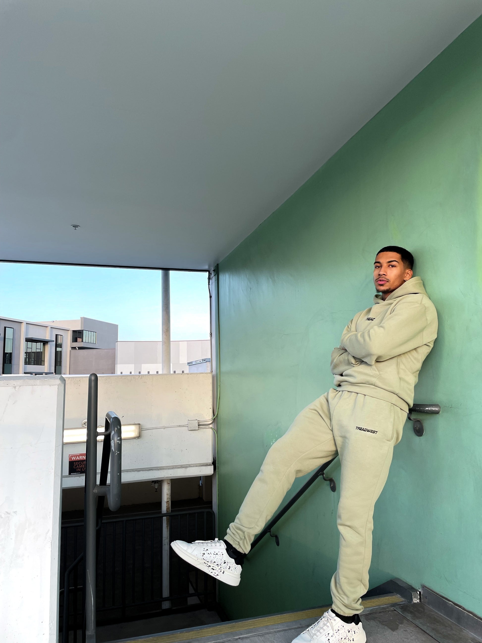 -Male Model is wearing size Large in Hoodie and Medium in Sweatpants.