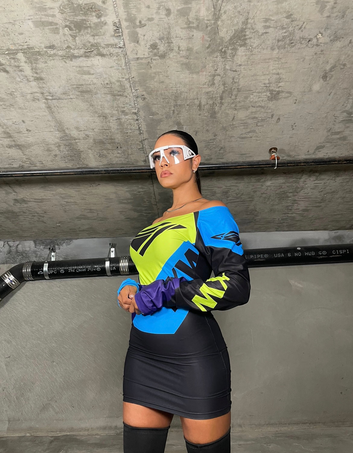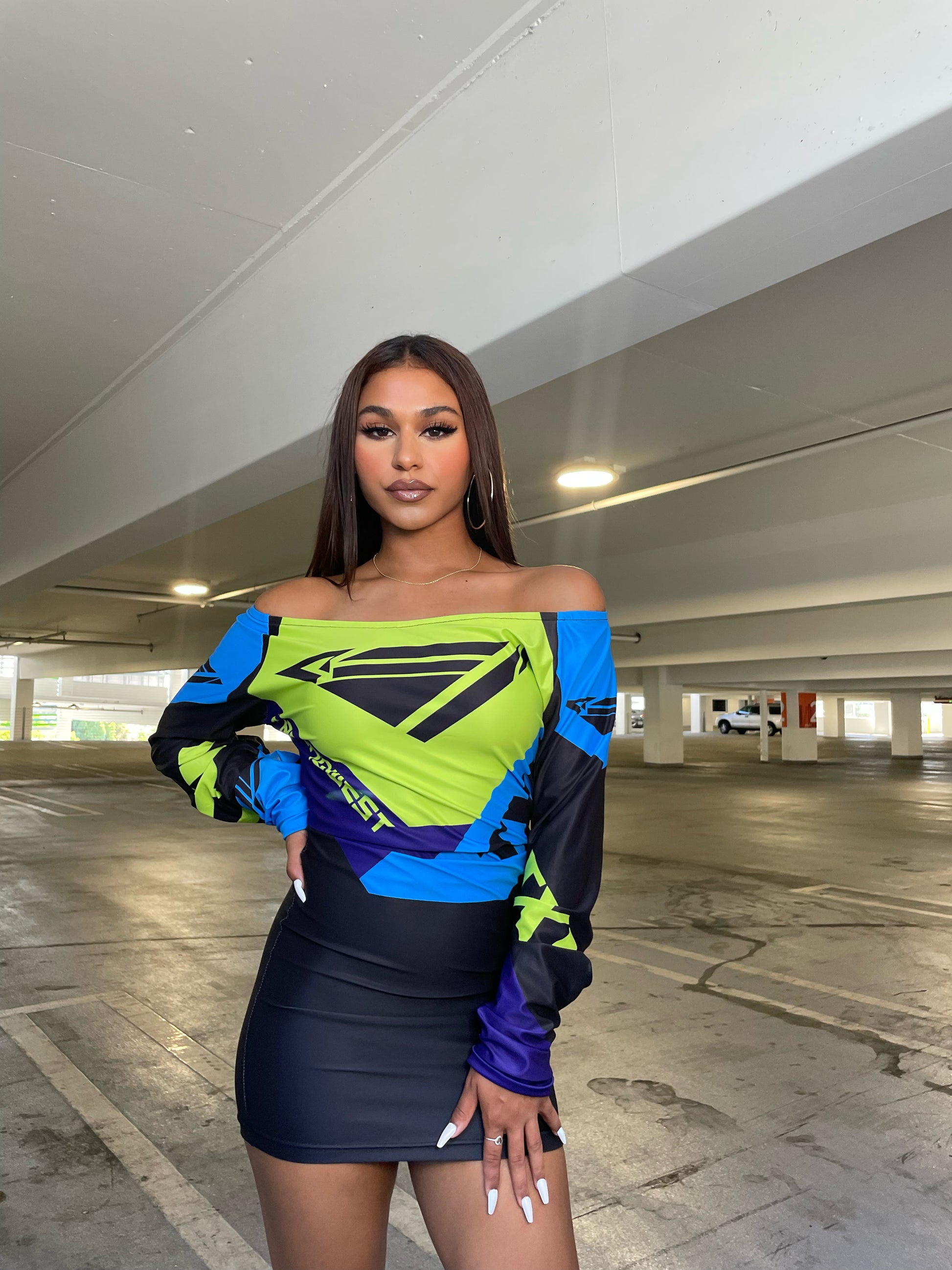 The sleek and sophisticated Neo 23 Dress is designed with a bodycon fit and super stretchy fabric to allow for maximum movement. Featuring a tapered waist and flattering silhouette, this dress is the perfect way to make a statement. A sexy and trendsetting addition to any wardrobe.