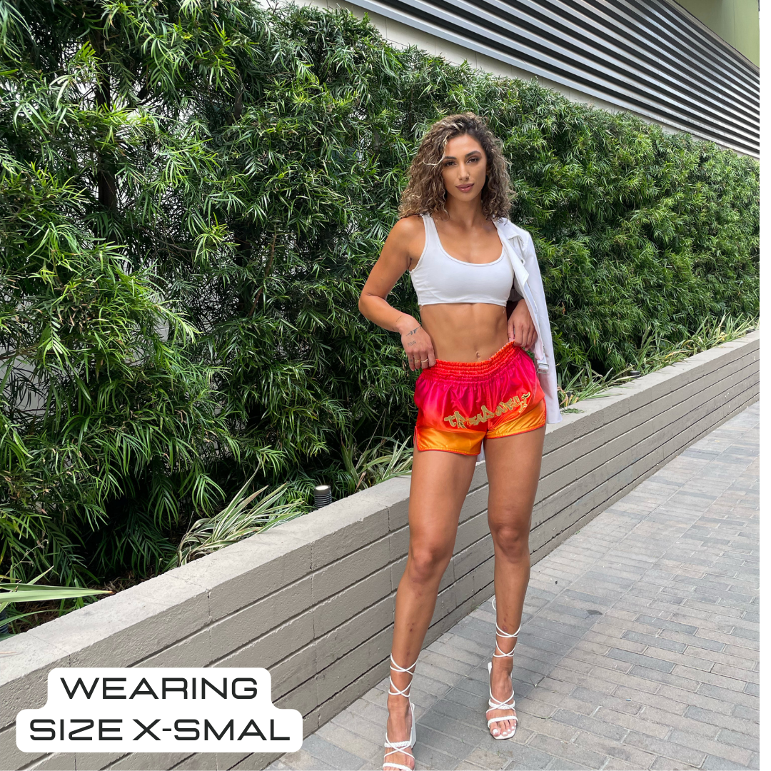 The Golden Glow shorts are all about bringing the fire, girl. Basically a whole damn sunset captured in fabric 😏. And because a queen deserves to shine, we added a gold reflective logo that catches the light, letting everyone know you're here to slay.