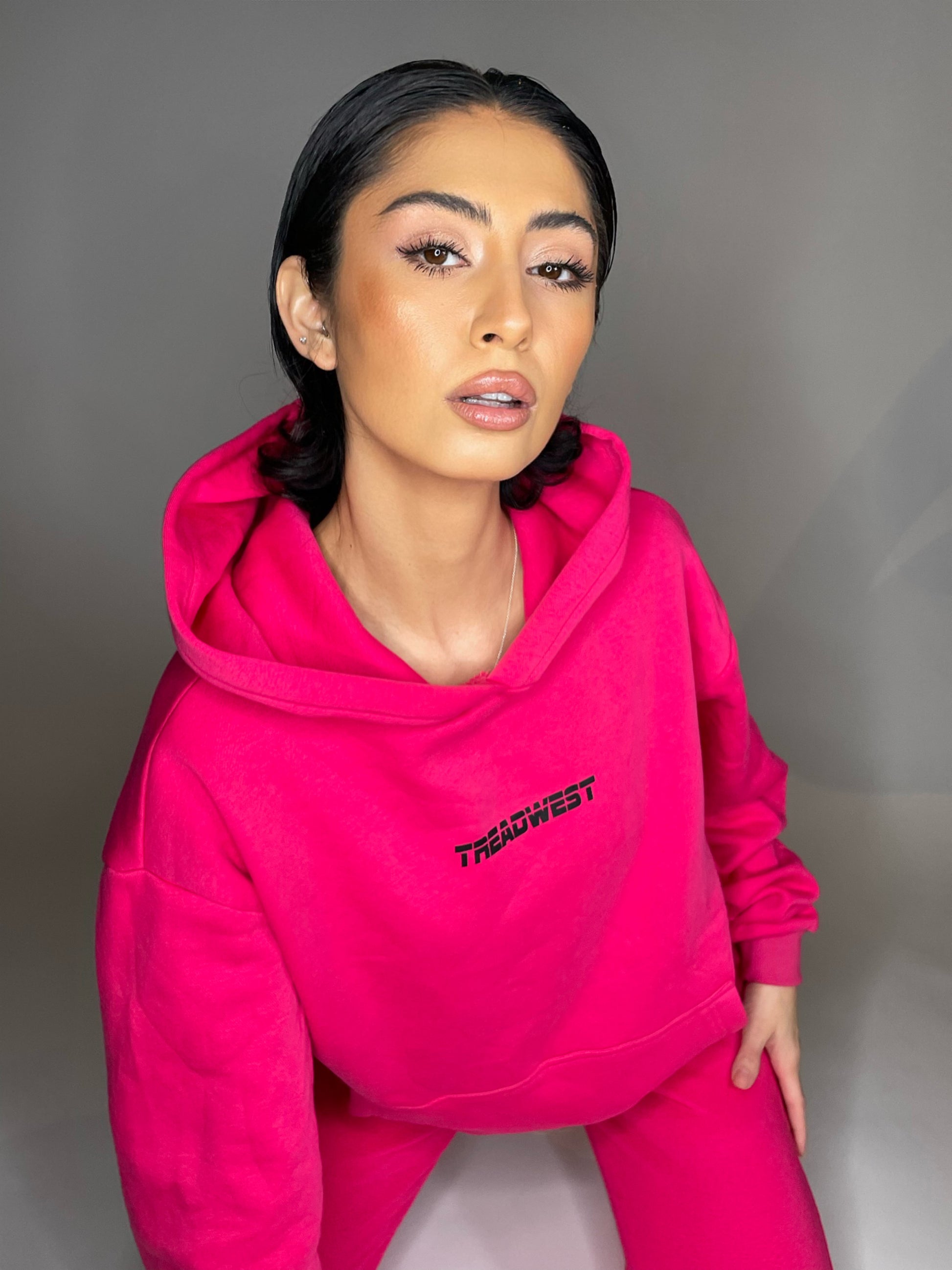 Warmth and comfort are redefined with the Treadwest VITALS hoodie in hot pink.